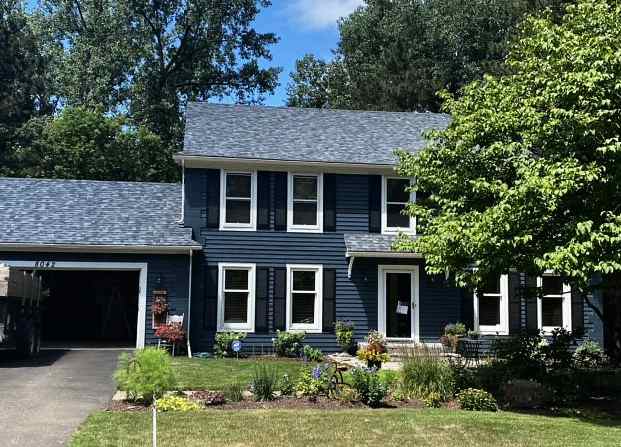 The homeowners filed a claim with their insurance, and we were able to work with their adjuster to make certain that all of the homeowners’ needs were covered. Before we began the replacement, we made sure to cover the surrounding landscape with tarps and plywood, because we understand the importance of a homeowner’s entire property being protected. We removed the damaged shingles and proceeded to lay down new roofing felt as well as Ice & Water Barrier, which provides additional protection to the home from future storms. Once this was installed and inspected, we put down new premium Owens Corning TruDefinition Duration Shingles, and the homeowners opted for the color “Slatestone Gray”, which they knew would give a great pop to their home’s siding. As always, we finished with a detailed clean-up of the property as well as an inspection of the entire project to make sure everything was installed perfectly. The homeowners were over the moon about their brand-new roof and the fact that it now stood out on the block!