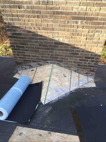Minneapolis roofing contractor Trinity Exteriors quickly responded to this emergency roofing repair. Our free inspection showed insufficient flashing and a botched caulking job was allowing water to flow from the steep-pitched roof into the chimney. Our crew built a cricket to divert water around the chimney. We put down Owens Corning Weatherlock Ice & Water Barrer to protect against driving wind and rain, flashed around the chimney and then installed replacement asphalt shingles where the old shingles had been damaged.